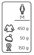Peso e metro del gomitolo di filato: 50 g (130m)